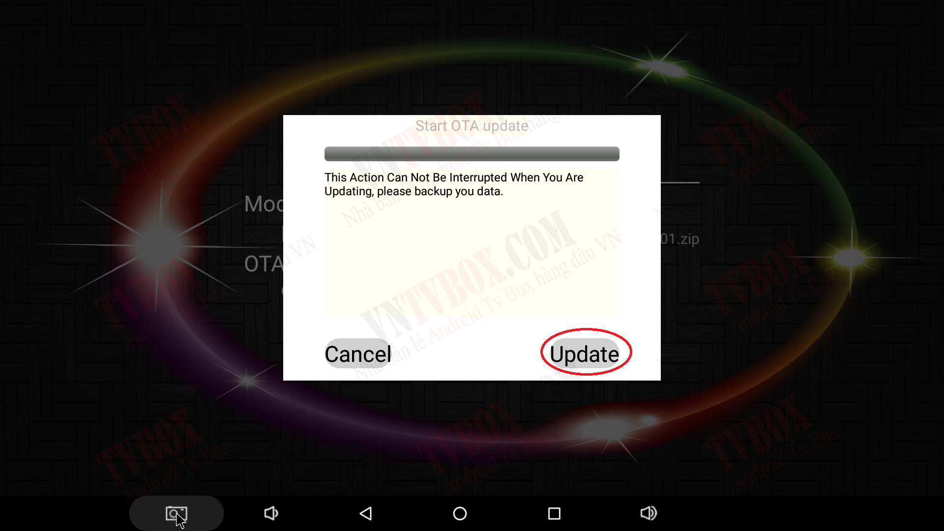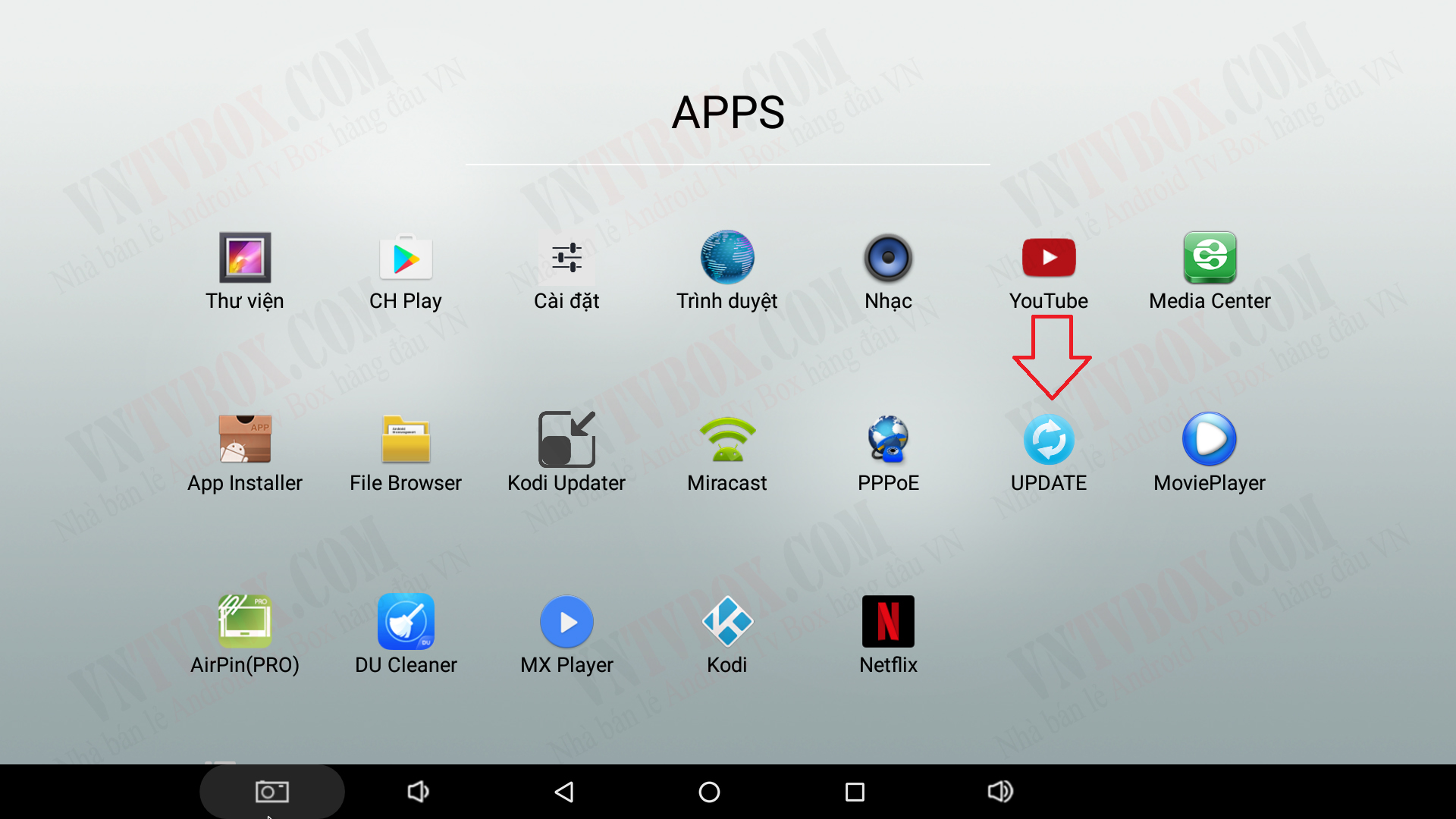 Bạn vào MENU chính của MECOOL BB2 tìm đến mục UPDATE như hình trên nha!